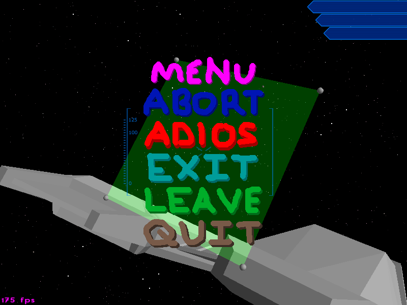 The collision detection is very exciting stuff, though not nearly as exciting as our extremely useful and elegant menuing system showcased in this shot.