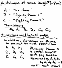 While we're at it, my friend Jon sketched out some ideas for music for the game and sent this to me a few days ago. It will be awesome to see what he comes up with...